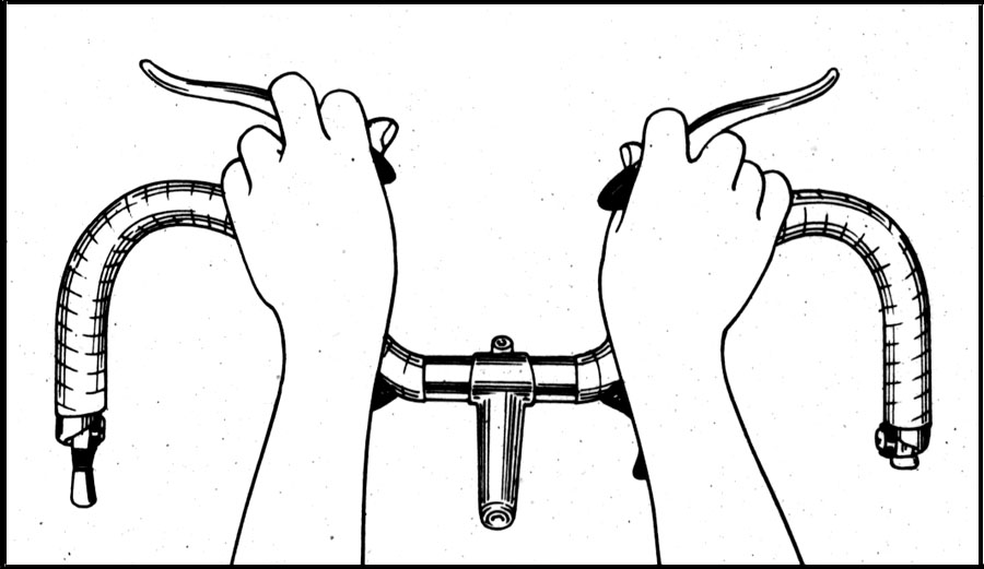 drop bars, where the soft part of my hands between thumb and fingers