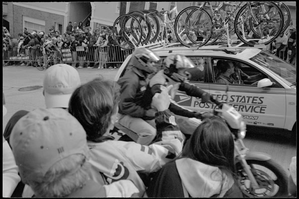 Actually, that's Chann McRae, Lance's teammate, but I'm sure he appreciates the support. With him are Jason McCartney (87), Gabriele Colombo (31), Danny Pate (47) and I see a 26 on a bike, which would be Plamen Stoyanov. |