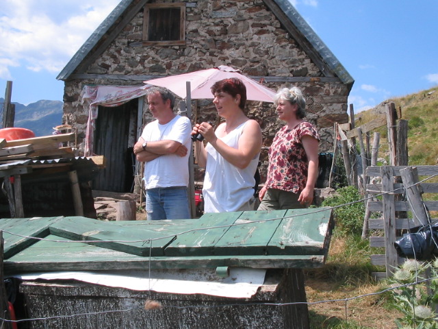 And to the right is Hélène Sentenac, from Cominac, who has spent hours and hours with me working out the fine grammatical details that I didn't get to in my earlier work. At the time I was doing my dissertation, Hélène was the school teacher in Castet d'Aleu, in the valley below Massat, married to Maurice Sentenac, the baker of Castet. Back in the seventies, there was no way I could have worked with Helene, she was so busy not only teaching, but making croustades and often doing the bakery rounds in the villages. I don't think I've ever met anyone who worked so hard. And it was Hélène and her family who first took me to Soulan and introduced me to Pépi Vidal and the Rumeau Family, who gave me a place to live and a family life to go with it. And now the younger generation of Rumeaus, three of my favorite people in the world (at right from left to right Bernard, who was 11 when I arrived in Soulan, Patricia who was 2, and Gisèle who was 14) are part of the current generation of Soulatans.
