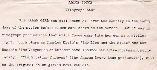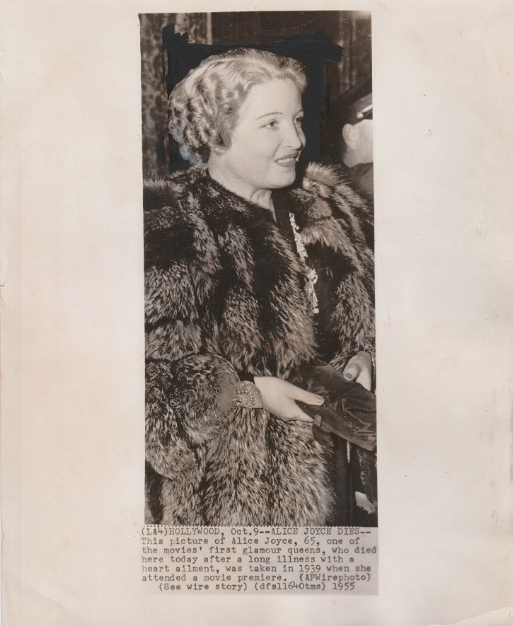 A publicity portrait stamped ALICE JOYCE / UNIVERSAL / IN /