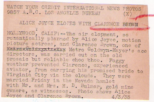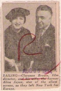 A picture of Alice and Clarence Brown, and a clipping using the same photo, in 1934. |  |