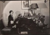 | A publicity picture of Alice, rather unconvincingly gardening, issued at the time of Sorrel and Son, along with the snipe. |  |