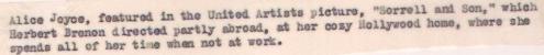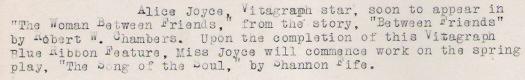 | A picture of Joyce with some text from Photoplay, April 1917, p. 25 |