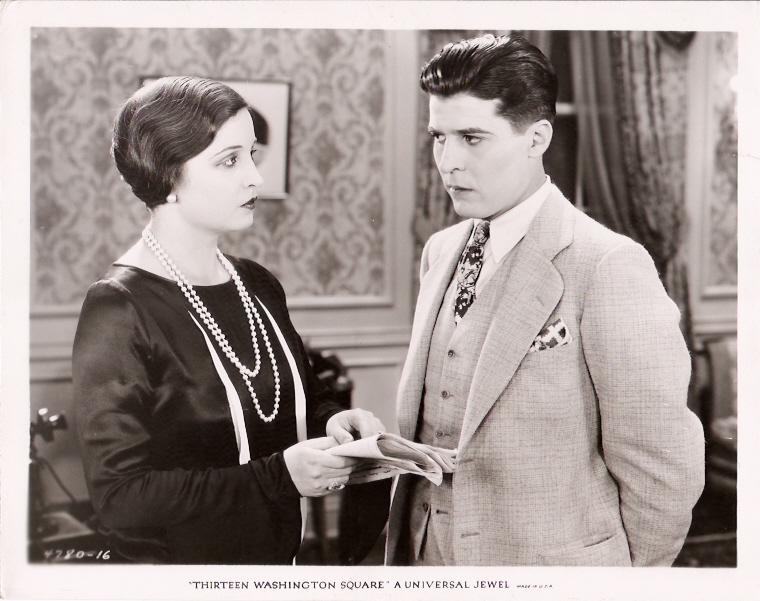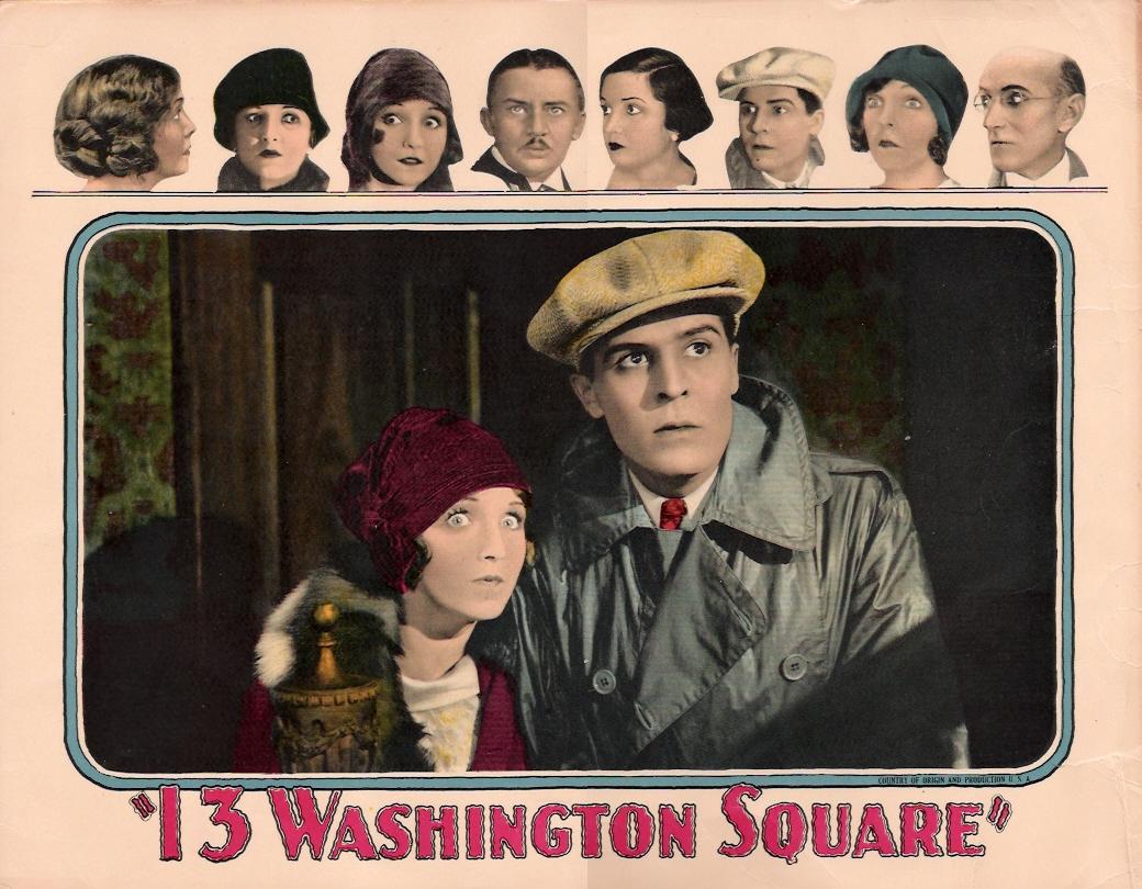 13 Washington Square (1928) Universal Pictures. Presenter: Carl Laemmle. Director: Melville W. Brown. Adaptation-Continuity: Harry O. Hoyt. Titles: Walter Anthony. Photography: John Stumar. Editor: Ray Curtiss. Cast: Jean Hersholt, Alice Joyce, George Lewis, ZaSu Pitts, Helen Foster, Helen Jerome Eddy, Julia Swayne Gordon, Jack McDonald, Jerry Gamble. 6 reels, 6,274 ft. A copy of this film is located the UCLA Film and Television Archives (16 mm, ca. 1600 ft, tinted, lacks main titles).