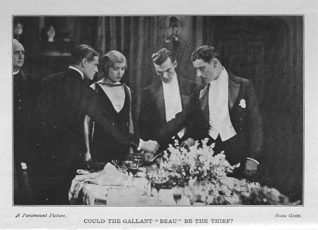 Beau Geste (1926) Famous Players-Lasky. Distributor: Paramount Pictures. Presenters: Adolph Zukor, Jesse L. Lasky. Director: Herbert Brenon. Screenplay: Paul Schofield. Adaptation: John Russell, Herbert Brenon. Photography: J. Roy Hunt. Art Director: Julian Boone Fleming. Musical score: Hugo Riesenfeld. Assistant Director, Ray Lissner. Cast: Ronald Colman, Neil Hamilton, Ralph Forbes, Alice Joyce, Mary Brian, Noah Beery, Norman Trevor, William Powell, George Rigas, Bernard Siegel, Victor McLaglen, Donald Stewart, Paul McAlister, Redmond Finlay, Ram Singh, Maurice Murphy, Philippe de Lacey, Mickey McBan. 10-11 reels, 9,900 ft.