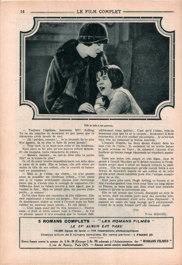 On their own behalf the authors of the stage play have worked toward an interesting situation that is left unsolved at the fadeout. The mother has come to love the man from whom she sought to save her daughter. Her husband, whose own hands are far from being morally clean, gives her her freedom and then begs her to return. The woman refuses and goes abroad to seek forgetfulness. You are at liberty to use your own judgment as to whether or no she eventually marries again.