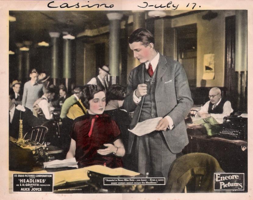 Two possible angles are suggested by the title of the Associated Exhibitors release "Headlines." One that it is a story of newspaper life and the other that it involves something that would make good newspaper headlines. Both of these figure in the plot to a limited extent, for the story opens in the editorial rooms of a big daily, two of the principals are members of the staff and there is a threat of a "headline" story in the big climax.
