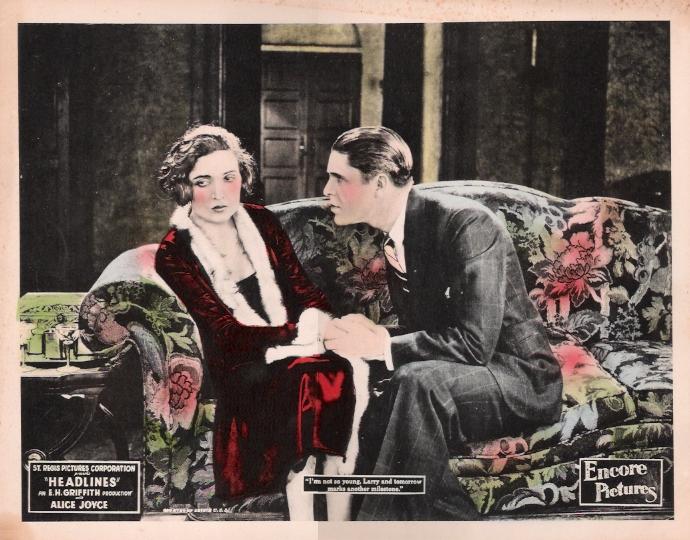 Headlines (1925) St. Regis Productions. Distributor: Associated Exhibitors. Director: E.H. Griffith. Continuity: Peter Milne, Arthur Hoerl. Story: Dorian Neve [or] Olga Printzlau. Photography: Parcel Picard, Walther Arthur. Cast: Alice Joyce, Malcolm McGregor, Virginia Lee Corbin, Harry T. Morey, Ruby Blaine, Elliott Nugent. Duke Ellington and the Washingtonians. 6 reels, 5,600 ft.
