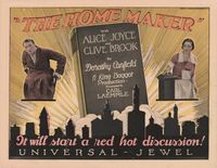 "The Home Maker," with Alice Joyce and Clive Brook, will be an outstanding picture of the coming season. Exhibitors will throw their hats in the air and cheer when they see its effect upon their audiences, for in addition to its unquestionable box-office value, it is the sort of clean, wholesome, gripping domestic drama which will do the reputation of the whole industry a world of good. Universal has been making some fine pictures lately and "The Home Maker" will be near the top of the White List, if it doesn't lead them all.