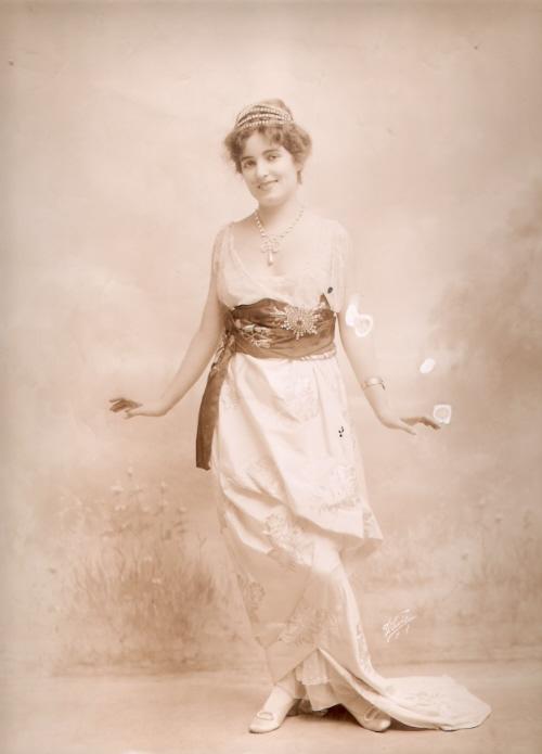 | A nice photo of Alice in the Lucile gown adorned with the jewels. Thanks to Derek Boothroyd for this scan. |