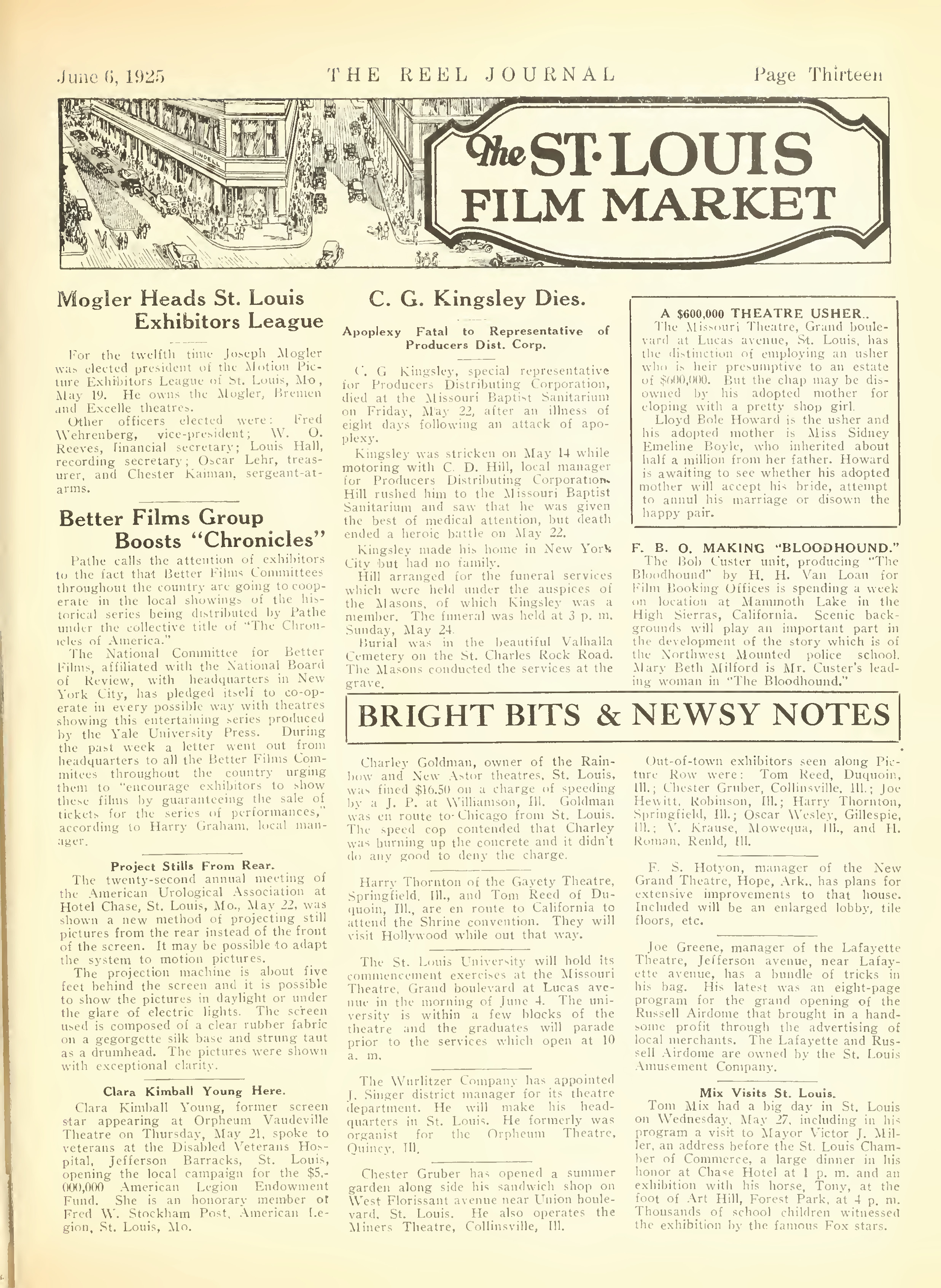 Clara makes a personal appearance at a St. Louis veterans hospital on "Clara Kimball Young day, May 25, 1925. Thanks to Joan Myers for finding a short article on this event in The Reel Journal, June 6, 1925 | |
