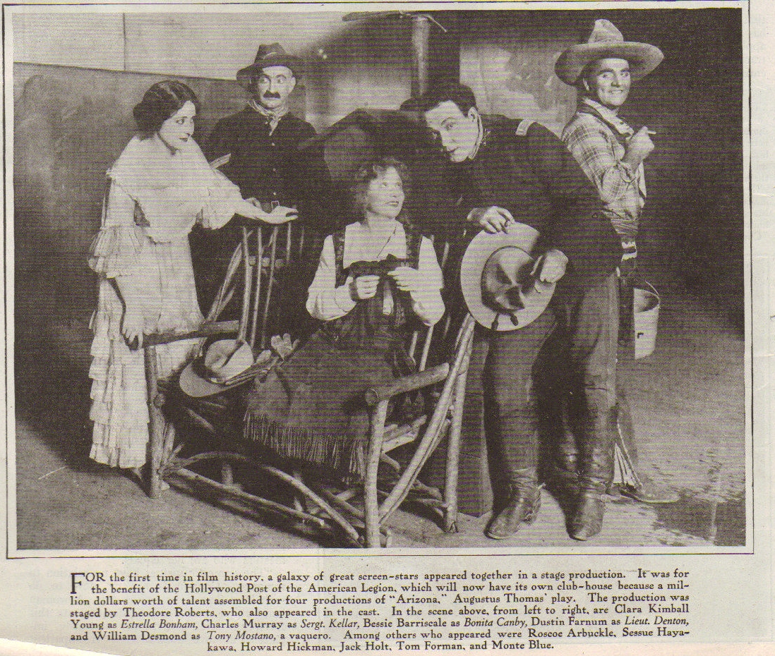 Not a film still, but a scene from an all star stage production to benefit the local American Legion post. Thanks to Mike Forster for identifying this as coming from the September 1920 issue of Photoplay, page 48. | ![]() |