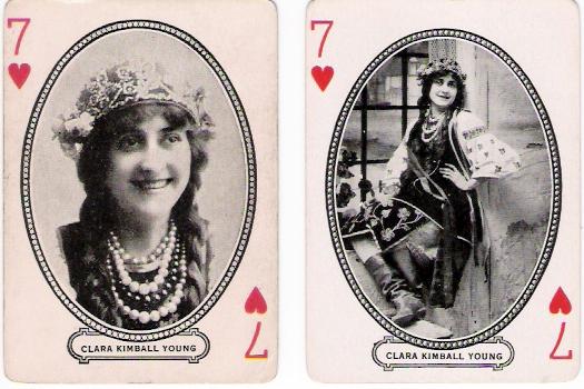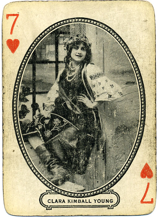 A picture of Clara in costume for My Official Wife which appeared on a Moriarty playing card. For information on this interesting set of cards, see the article on Things-and-other-stuff.com. At least two poses of Clara were issued on the 7 of hearts card, which can be seen here | |