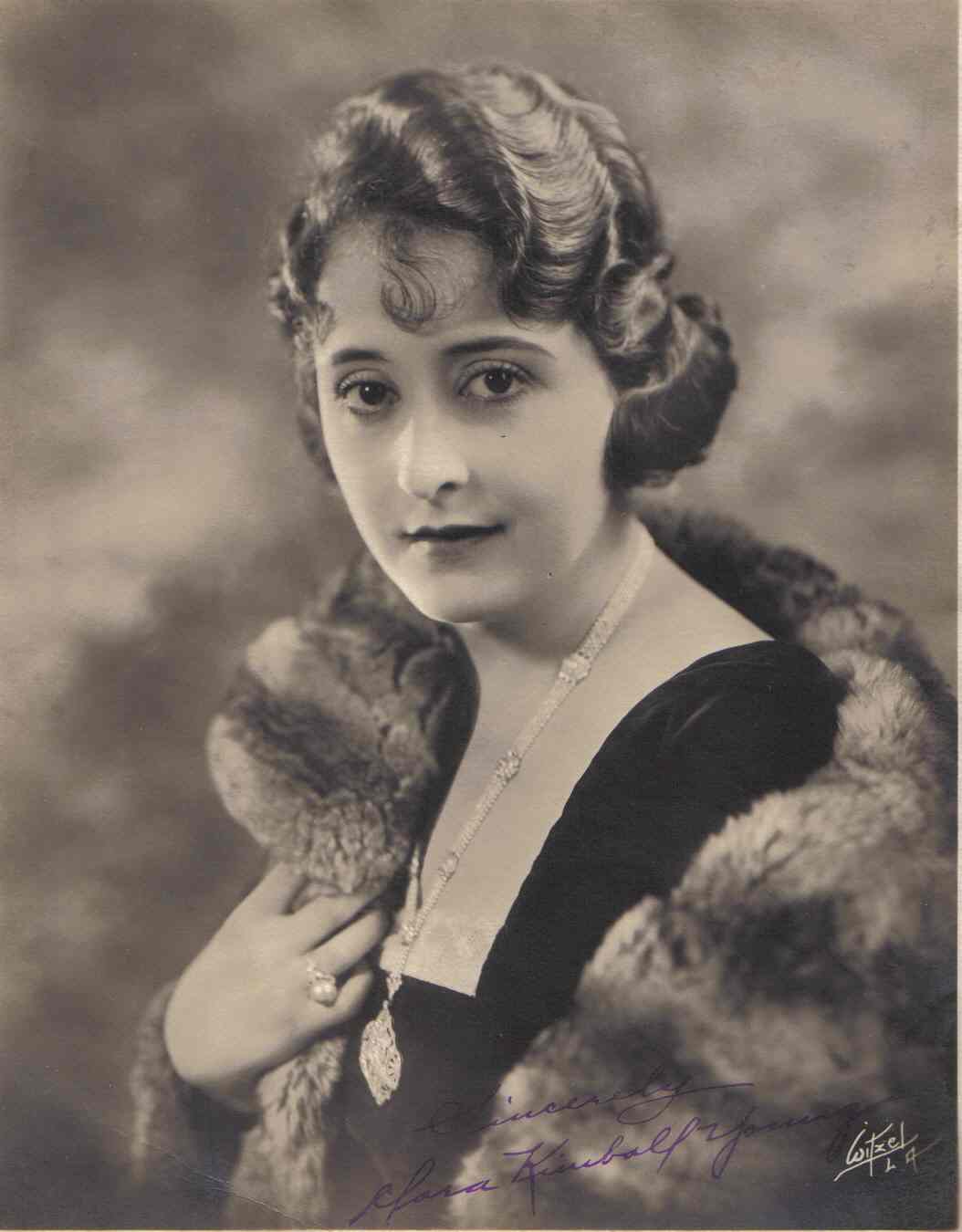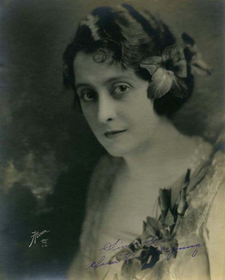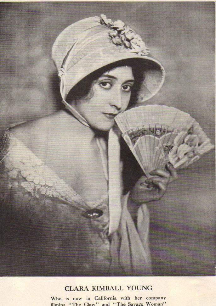 Clara apparently on the set of The Crusades with Cecil B. DeMille. As far as i know, nobody has yet spotted her in the film. The snipe on the back reads: BACK IN THE LIMELIGHT - Once Hollywood's most famous film star, Clara Kimball Young is back at work in character parts. Cecil B. DeMille, pioneer director, cast her in a role in his current Paramount production "The Crusades". Here they are talking ove old times between scenes on the set. | A nice portrait from rom Pat Wilson, who found it under a picture frame. | ||