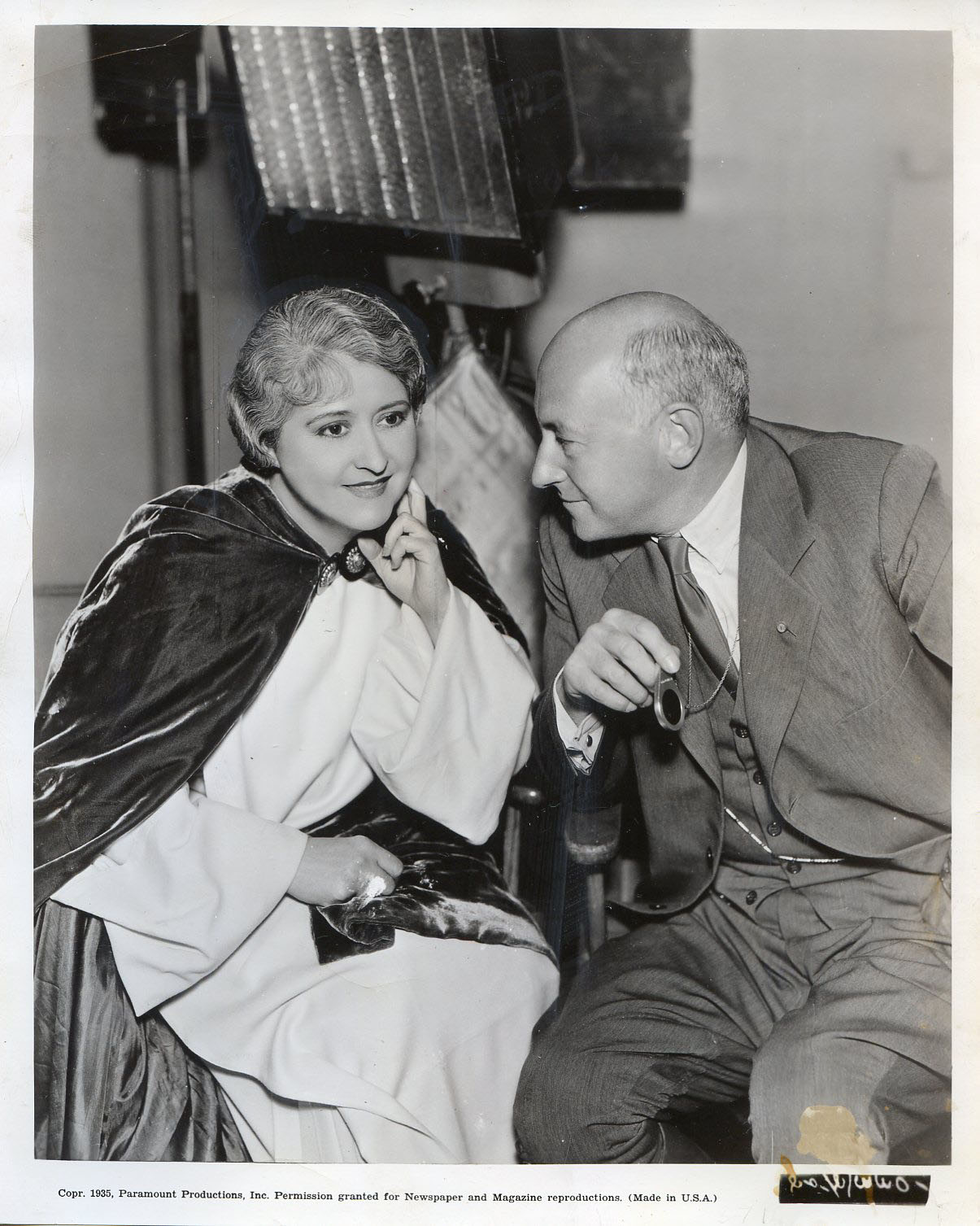 Another from Derek, the snipe is visible below the photo by Schaefer. She is in makeup and costume for the 1935 film She Married Her Boss. | |