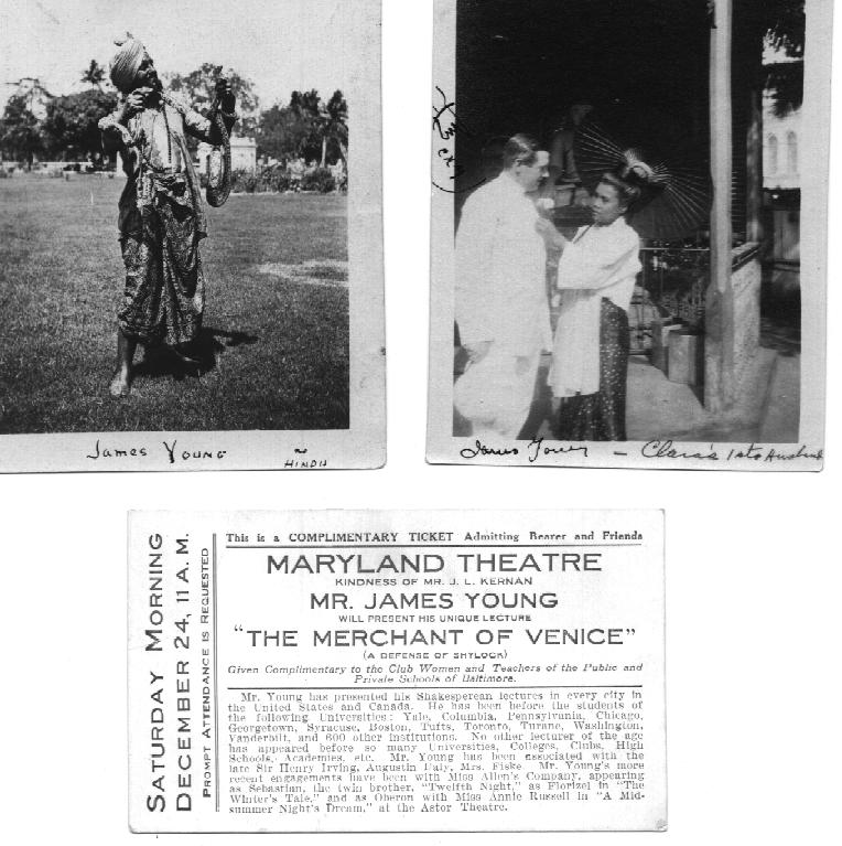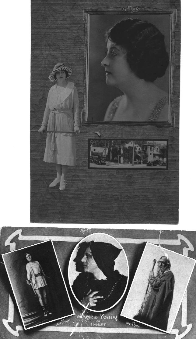 Clara and a picture of her studio, and card of James Young in Shakespearian stage roles | |