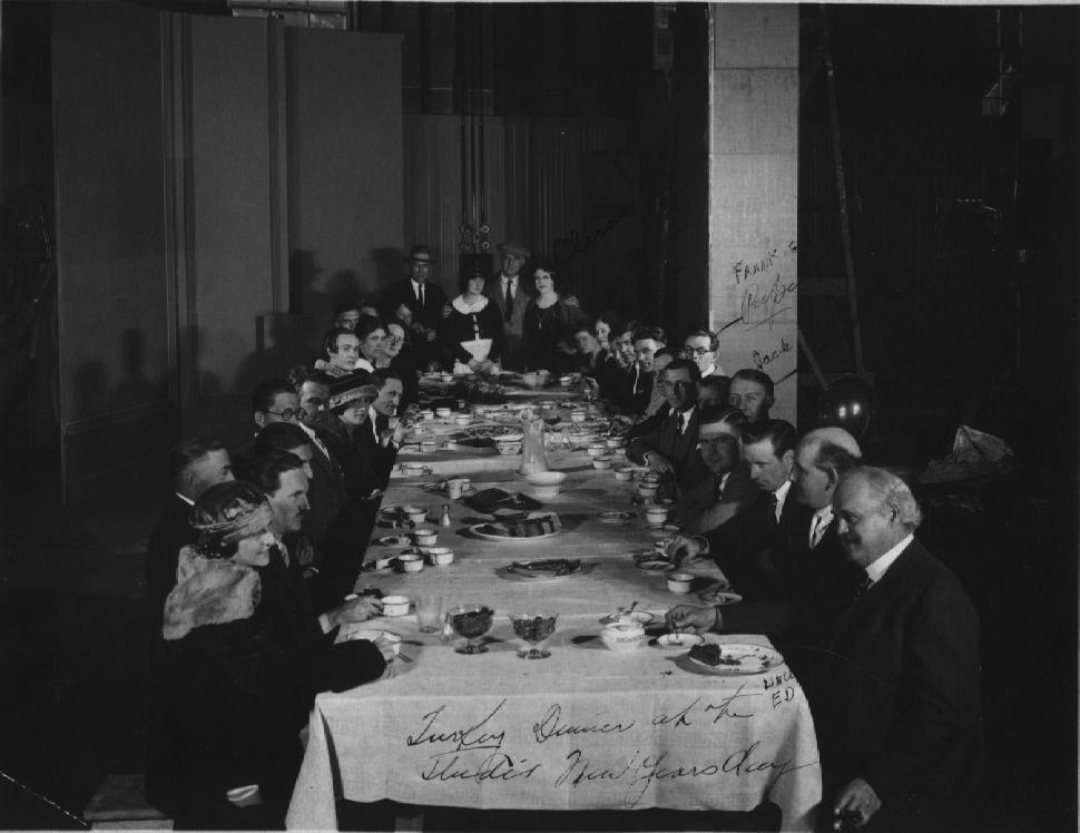 A New Year's day turkey dinner at the studio, around 1920. Edward Kimball seated opposite Clara | |