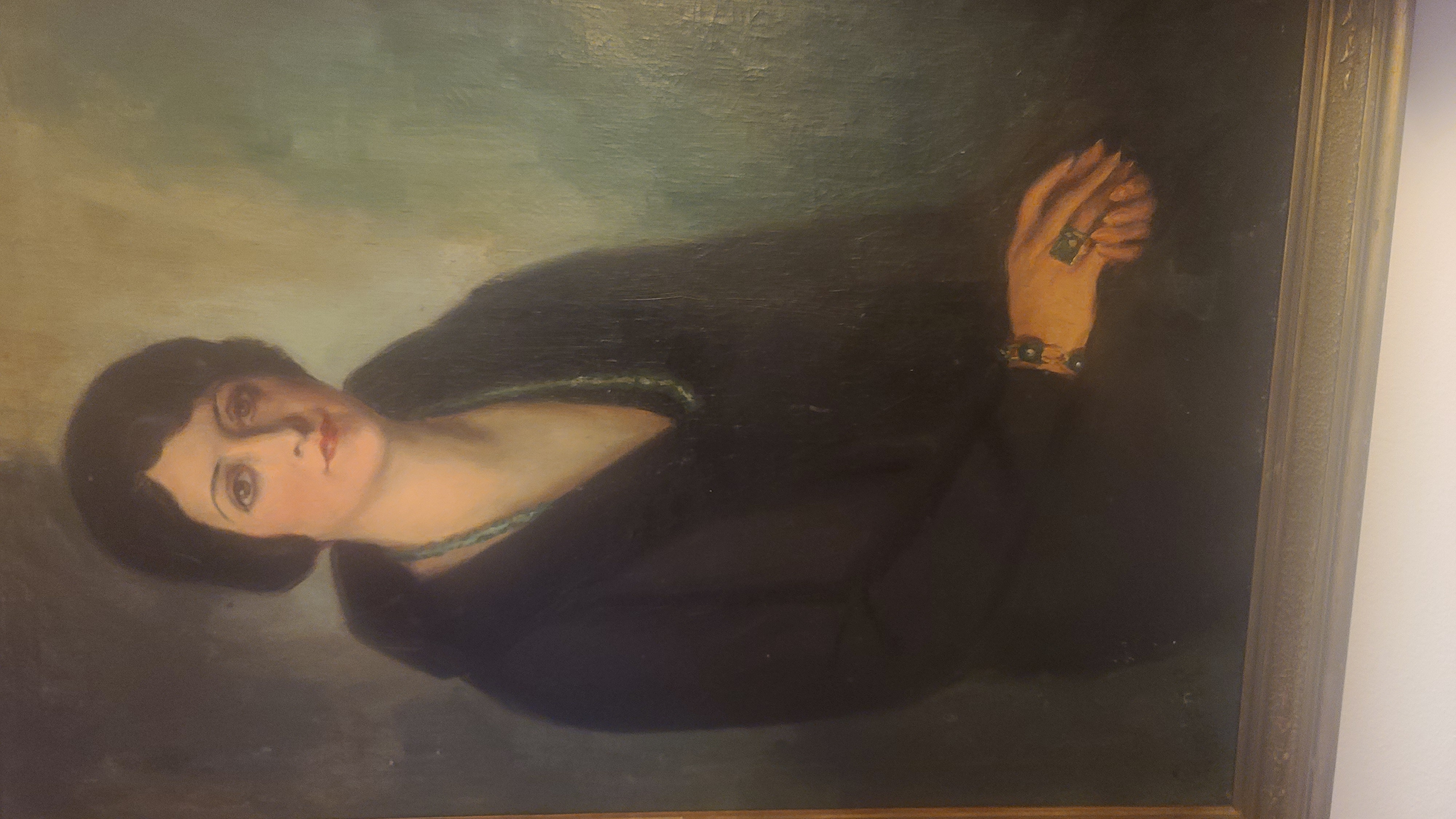 Elizabeth Elias, the granddaughter of Barbara Ulibarri, who was Clara's second cousin and provided me with many of the pictures in the gallery. She now has the painting of Clara and provided me with a photo of it. We have been unable to identify the signature, which you can see here | |