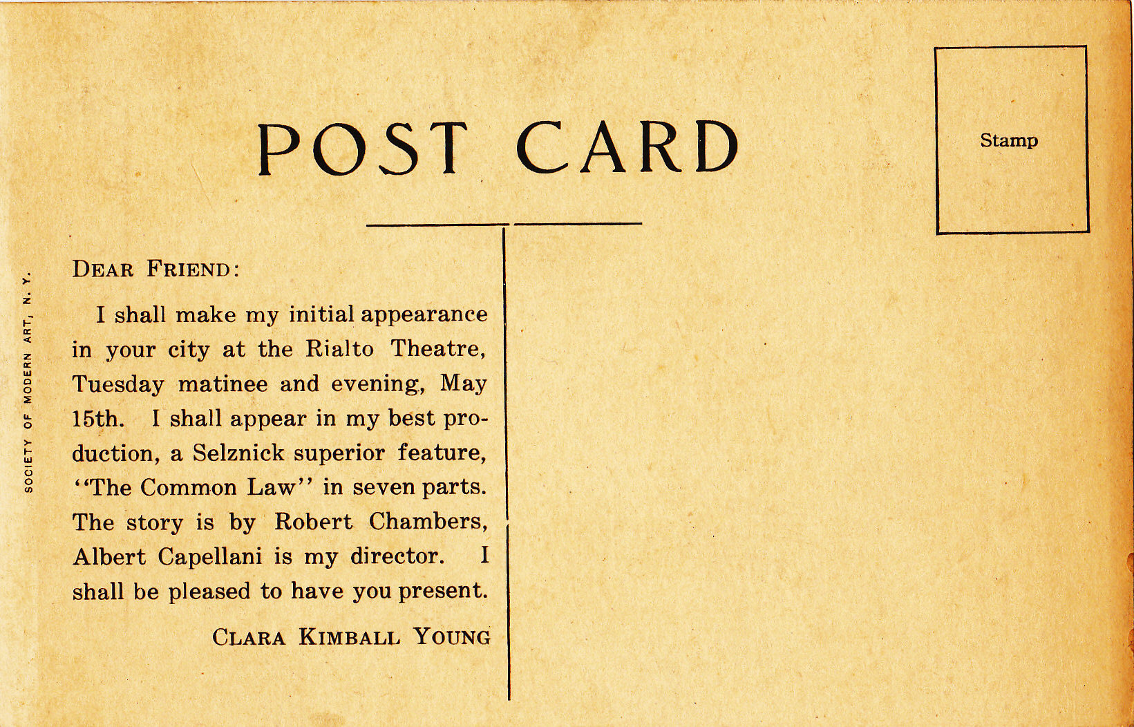 A post card, courtesy of Phil J. Tedeschi and Curt F, who also supplied a scan of the interesting text on back |