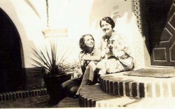 With friends at her house at 7462 Waring Ave., Los Angeles, summer of 1949. This was just a couple of blocks from the address given in her obituary of 807 North Curzon Ave. | |
