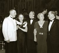 D.W. Griffith, Agnes Ayres, Gene Raymond, Clara Kimball Young and J. Stuart Blackton at the Associated Cinema Stars Dinner Dance in Aug. 1936 (Thanks to Randy Bigham) |
