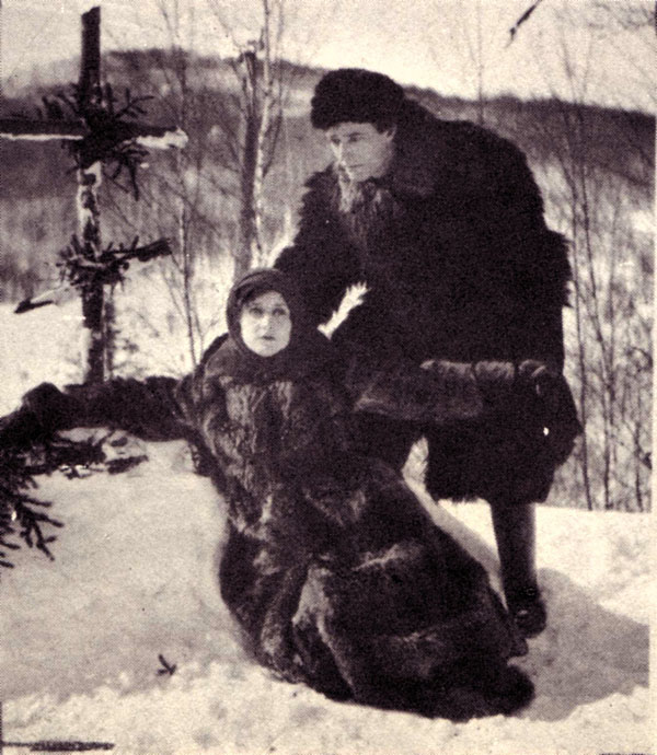 Snow is much in evidence in your typical American silent film set in Russia. Thanks to Bill Rabe for this picture. Click thumbnail for a larger image. |