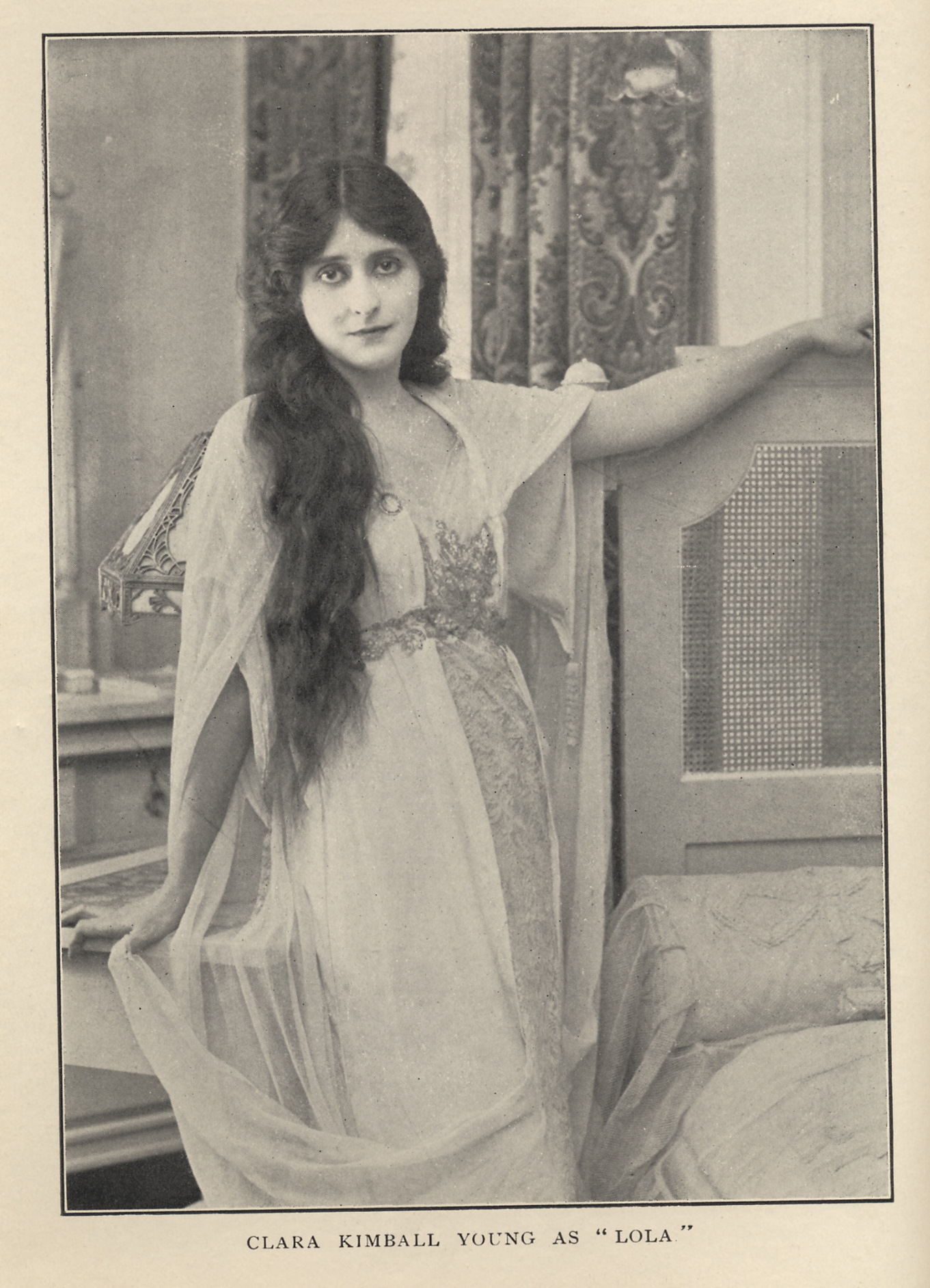 Lola (1914) World Film Corp.; A Schubert Feature. Distributor: World Film Corporation. Director: James Young. Assistant Director: Edwin L. Hollywood. Adaptation: James Young. Cast: Clara Kimball Young, Alec B. Francis, Edward M. Kimball, James Young, Frank Holland, Olga Humphreys, Irene Tams, Mary Moore, Julia Stuart, Baby Esmond. 4-5 reels. LOST