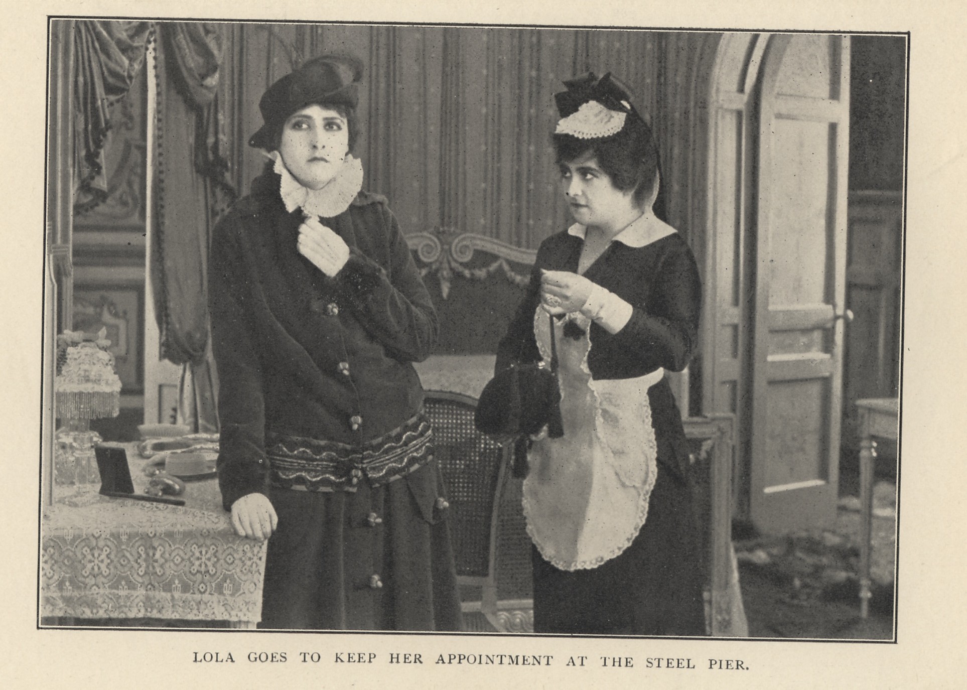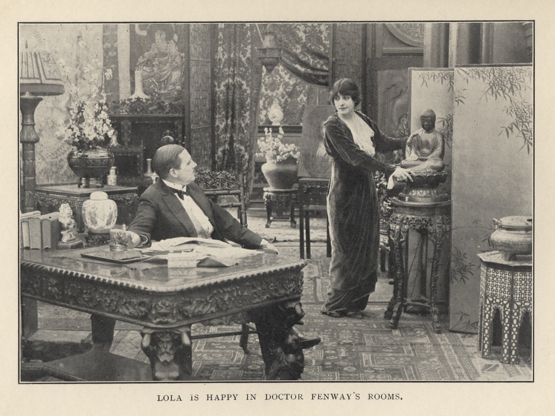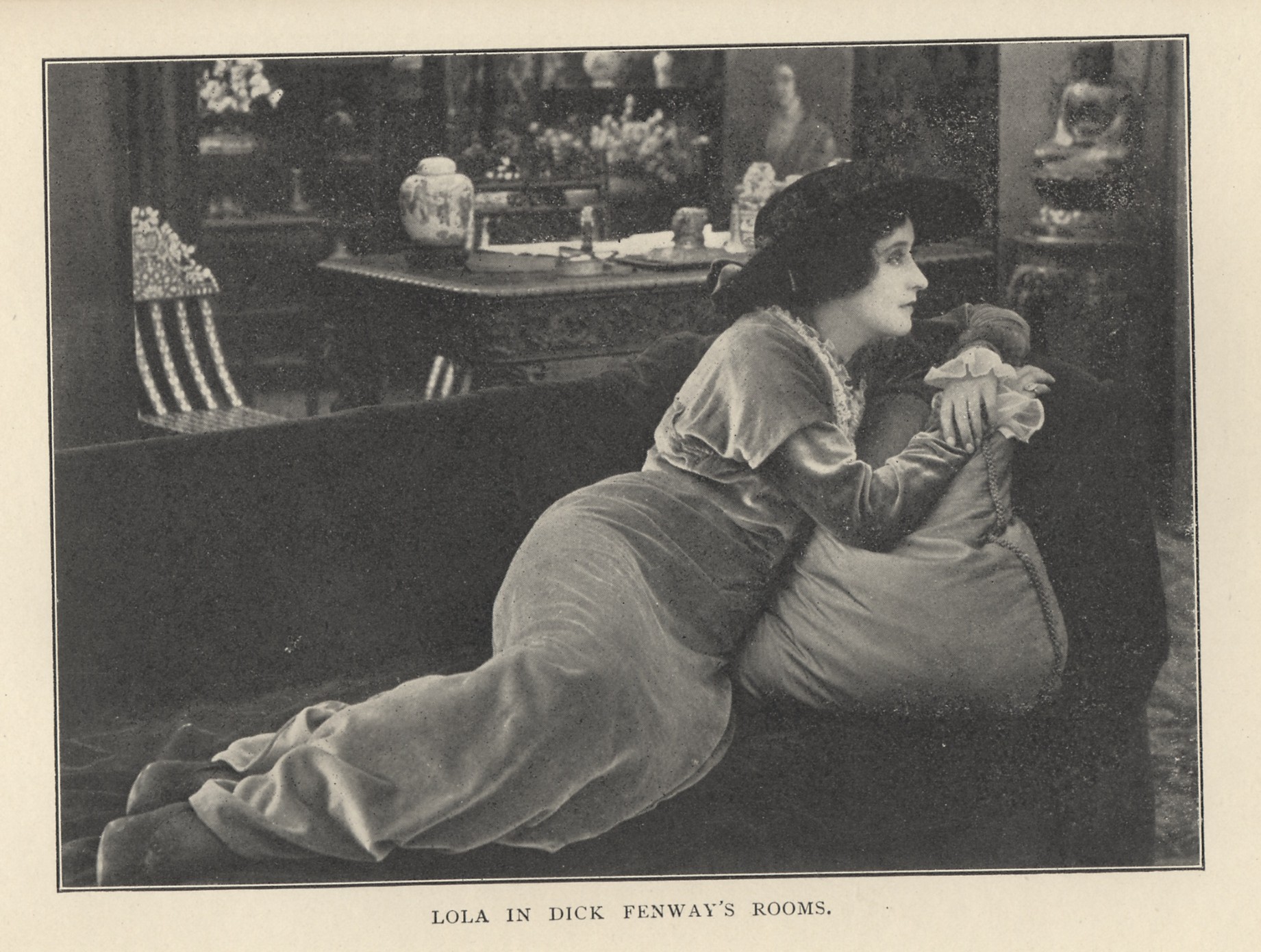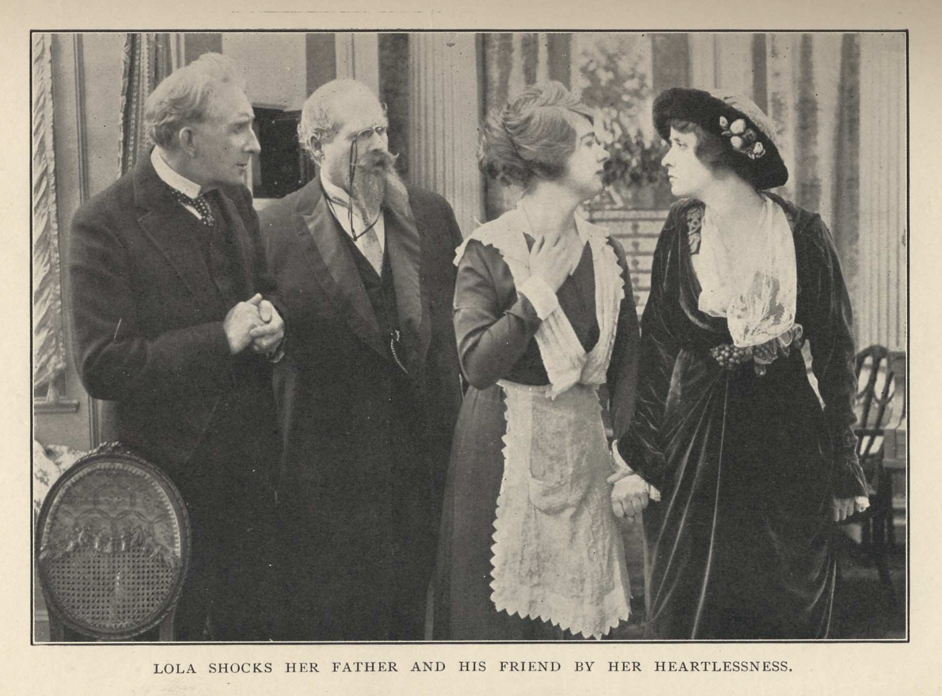 In the opening scenes we were shown that Lola had been attracted by two lovers, one a rather questionable individual, the other all that a fine girl would choose and it was to the latter that she gave her affections. Not when no soul is mistress of her will, a demon seems to have entered the empty dwelling, her beautiful body. Soon we hear the servant exclaiming in astonishment and fear, "Lola, how terribly you have changed!" She is such that when, after she has wrecked the happiness of two or three men, has developed heart disease and dies, her father refuses to resuscitate her a second time.