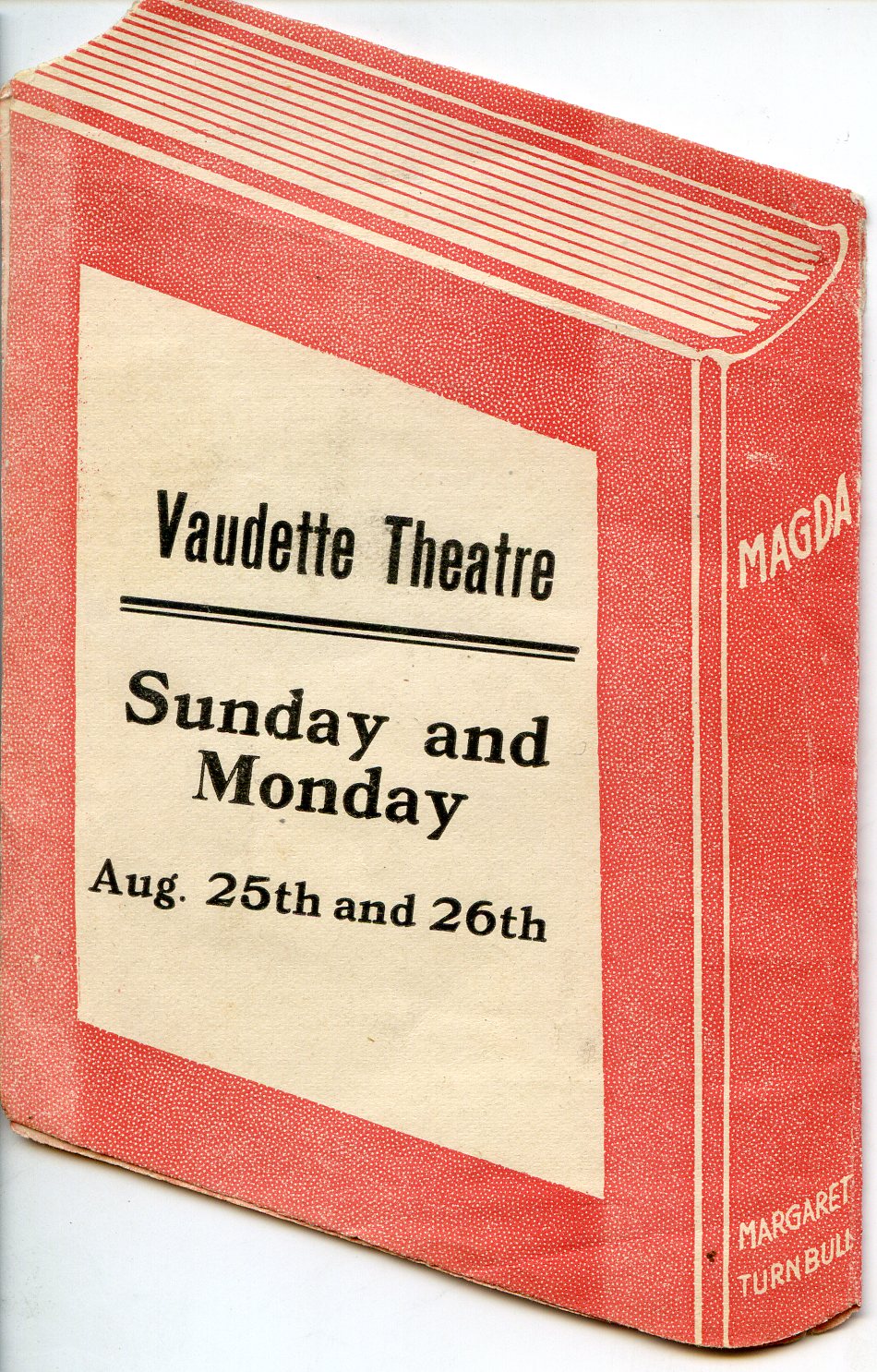 MAGDA. (Eight Parts--April)--Magda is a beautiful girl with a gift for music. The pastor of her father's church falls in love with her. He gets her father's consent to ask her to marry him, but Magda doesn't love him. The father tells her that she must either marry the pastor or leave his house. Magda leaves his house and goes to a neighboring city as companion to an old lady. The father closes his door to the girl.