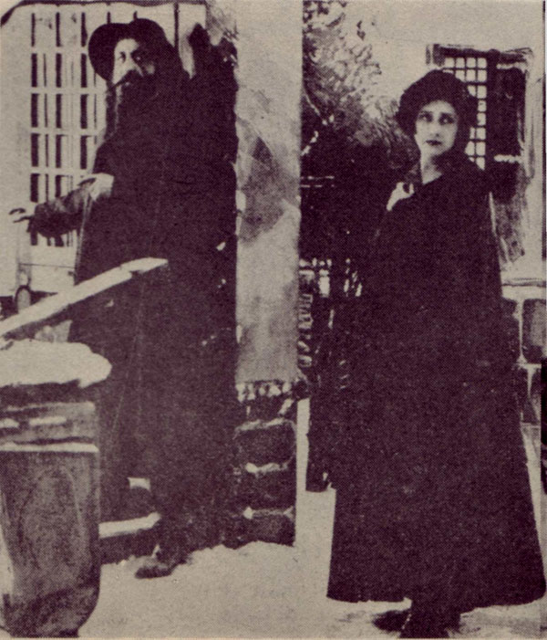 Studio-built exteriors, and occasional panoramas of Paris aid to heighten the atmosphere. Following these glimpses of the Latin Quarter comes Svengali's wanderings with Trilby, a period in the lives of the characters shown by means of flashes and dissolves that are of value in strengthening the illusion.