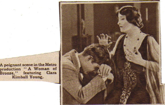 The Woman of Bronze (1923) Samuel Zierler Photoplay Corp. Distributor: Metro Pictures. Producer: Harry Garson. Director: King Vidor. Adaptation/Scenario: Hope Loring, Louis Duryea Lighton. Camera: L. William O'Connell. Cast: Clara Kimball Young, John Bowers, Kathryn McGuire, Edwin Stephens, Lloyd Whitlock, Edward Kimball. 6 reels. This film is apparently LOST