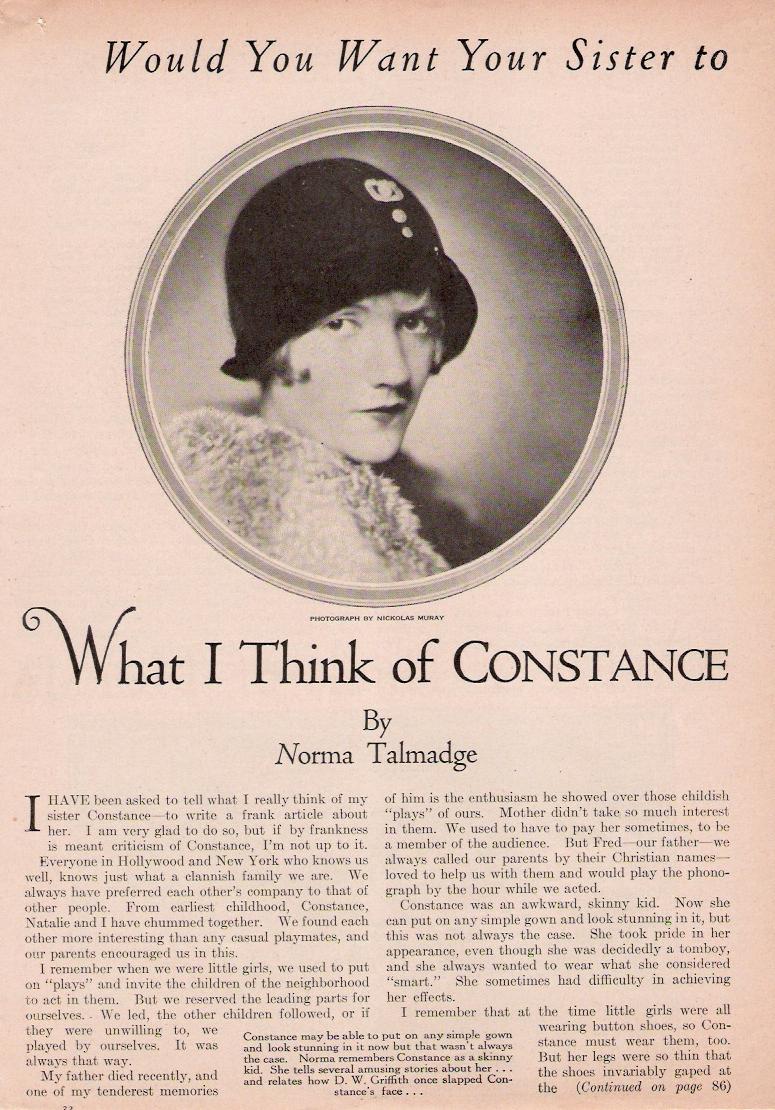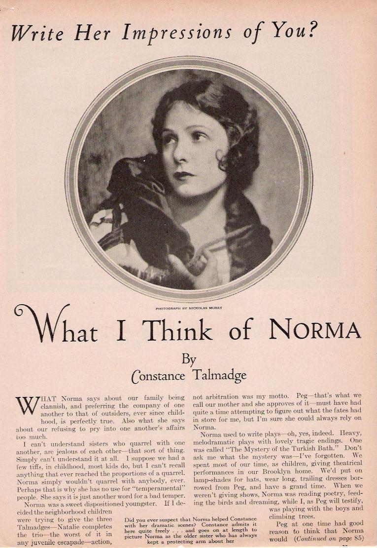 These two articles, allegedly by Norma and Constance Talmadge, appeared in 1926. Thanks to Derek Boothroyd for contributing these