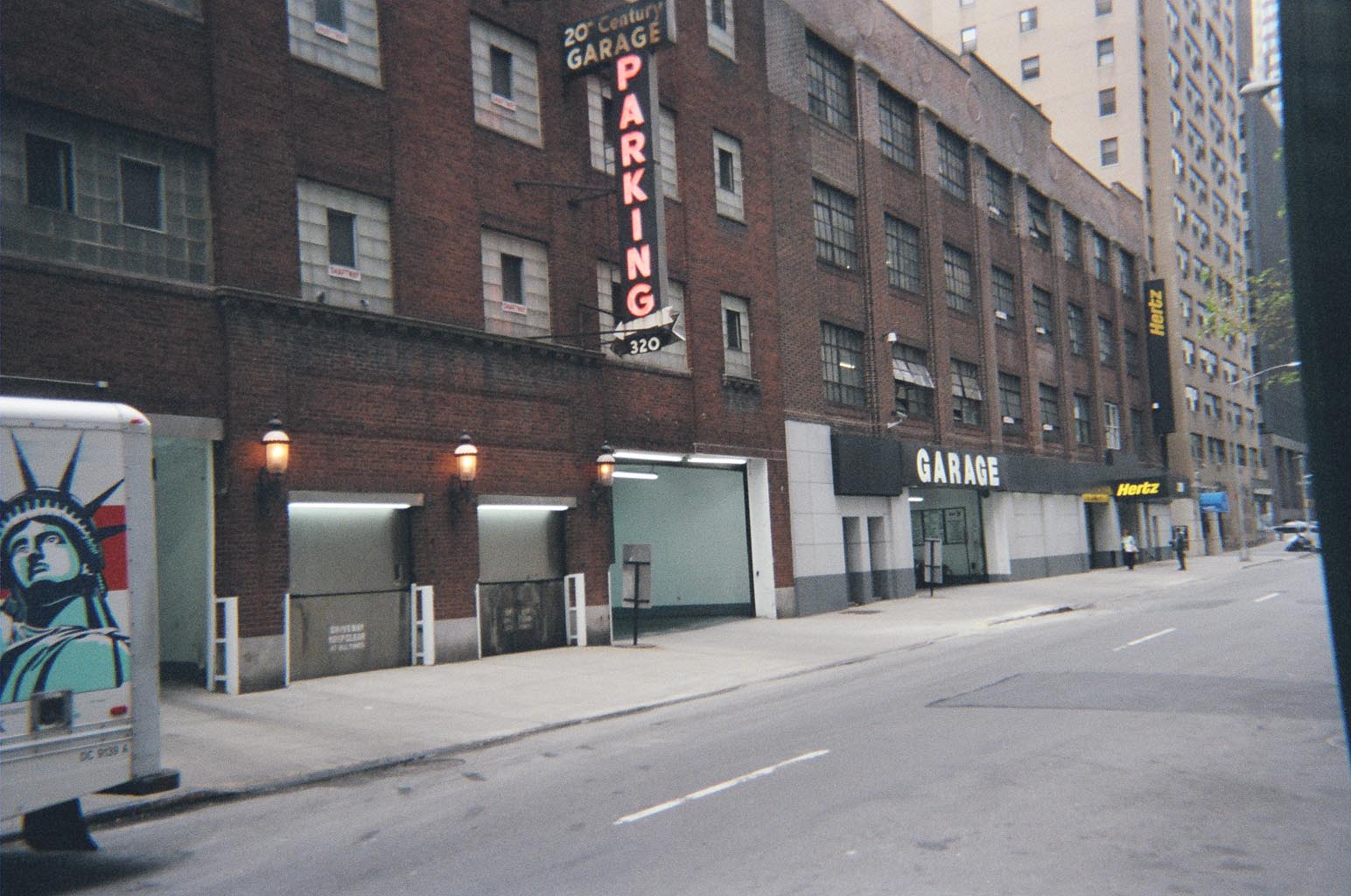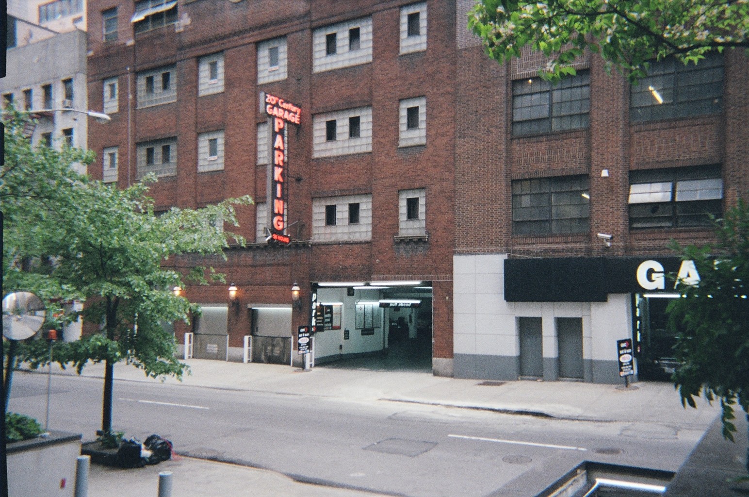 This view also shows the adjoining building which was part of the garage. I do not know if they ran continuously in the 1920s (i.e if that was the Oliver Studio). The site is across the street from the present building housing the Libyan mission to the U.N. A look at Google Street View will show that the neon parking garage sign has been moved to the adjoining building (above the awning which says GARAGE), which, obviously is still a garage. It's a bit confusing because it's the same sign as was on the Talmadge building, and the building on the other side of the new Singapore Mission looks very similar to that garage (bottom floor white, upper stories brick)