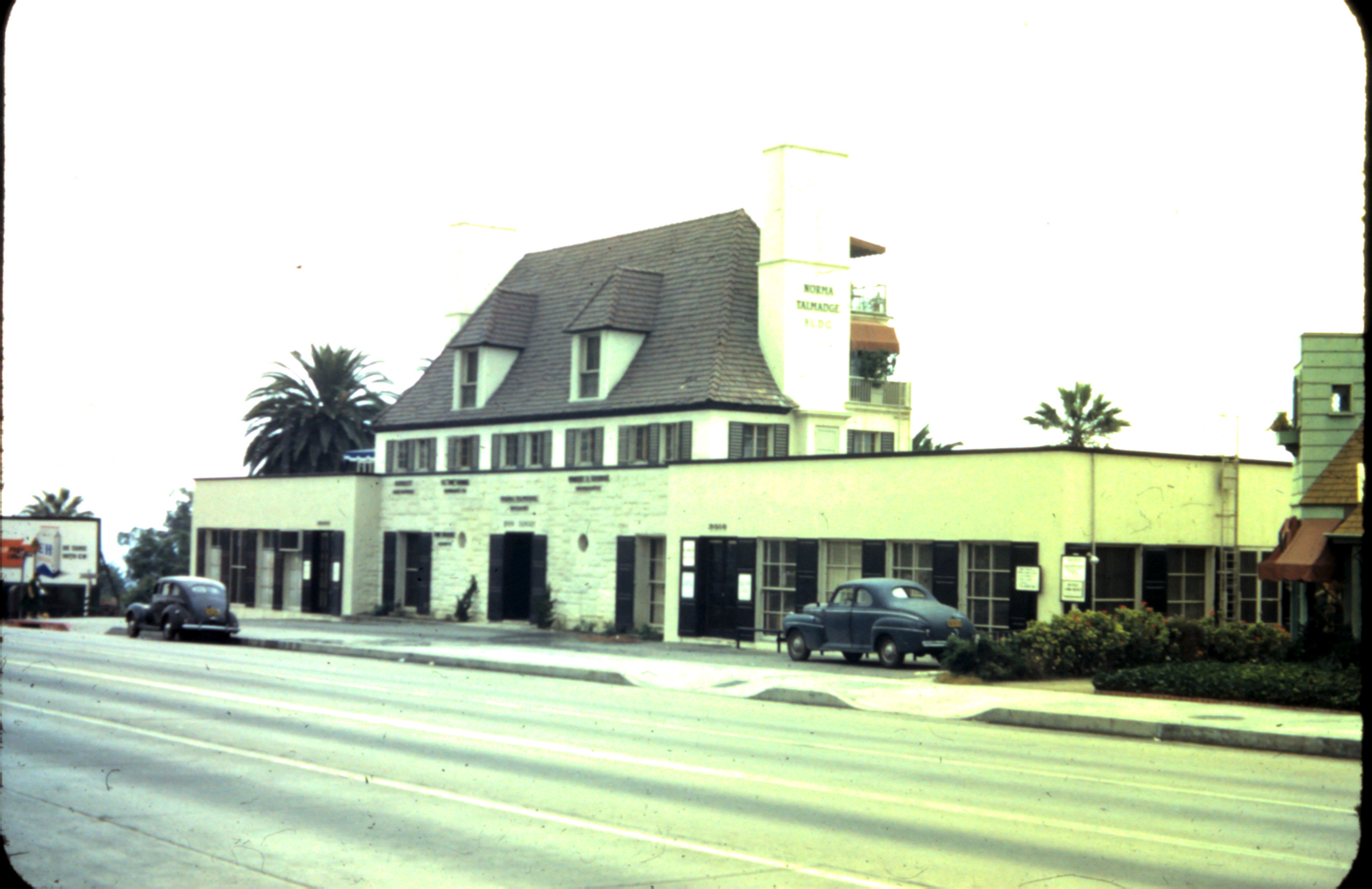 9000-9006 Sunset Blvd., Los Angeles, California. The Norma Talmadge Building on Sunset Strip in Los Angeles, a 3-story French-Norman style office building, built circa 1937, torn down in 1963. This property was inherited by her nephew Joseph Talmadge. After its demolition, its shutters ended up in the Magic Castle in LA--they are mentioned here and there is a YouTube video which includes a picture of the building (about 12 seconds in.) And thanks to Tim Kraetsch for the photo from his parents' collection