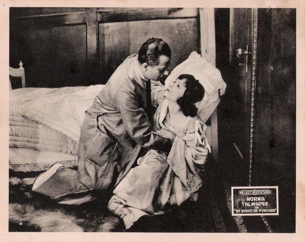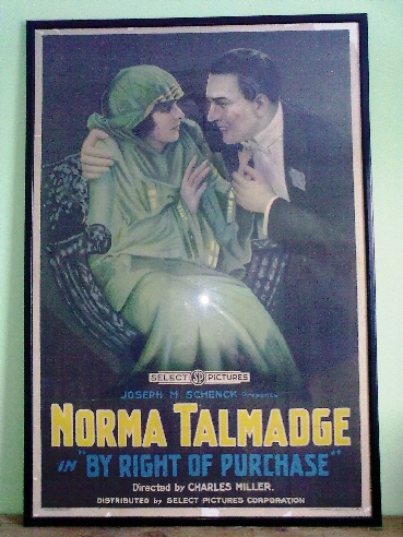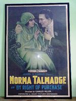 By Right of Purchase (1918) Norma Talmadge Film Corporation/Select Pictures Corporation. Presented by Joseph Schenck. Directed by Charles Miller. Scenario by Harry O Hoyt. Camera by Edward Wynard and Alfred Moses, Jr. Cast: Norma Talmadge, Eugene O'Brien, Ida Darling, William Courtleigh, Jr. Charles Wellesley, Florence B. Billings, Hedda Hopper. 6 reels. A copy of this film is located at the Library of Congress (35 mm., some deterioration, possibly missing the last reel)