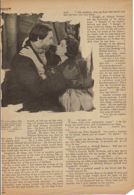 The big punch is the edict issued by the Soviet nationalizing all the women of Russia between 17 and 32. Around this are built situations at once thrilling and full of melodramatic action.
