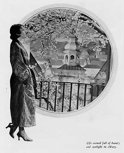 Weeks passed-weeks in which Mary could hardly believe in her good fortune. In her day dreams, she had never imagined such an existence. She was awakened one August morning at four by the ringing of her telephone. It was Paul's voice at the other end, telling her that he had received orders to leave. She didn't stop to ask what it meant. "I'm coming right over," she said, and rang off. |