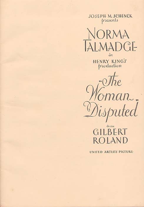 I cannot, without seeming inconsistency, go on to tell you of the innumerable qualities in the picture that makes all of us at the studio join with Mr. Schenck in saying that "The Woman Disputed" is a screen attraction that will please audiences everywhere.