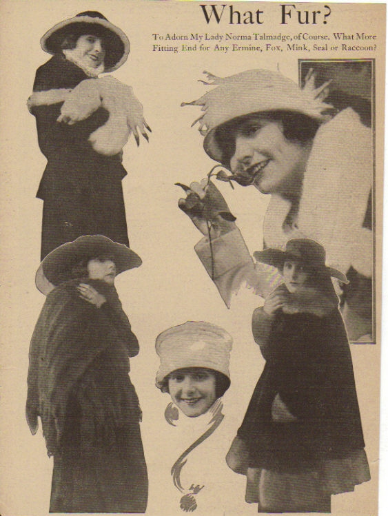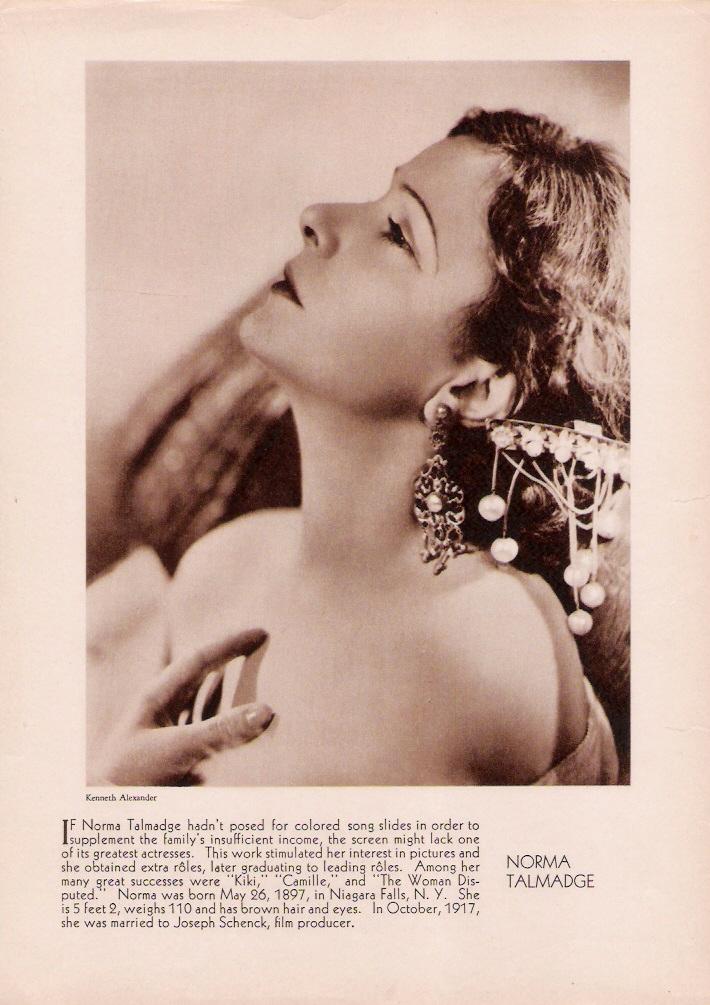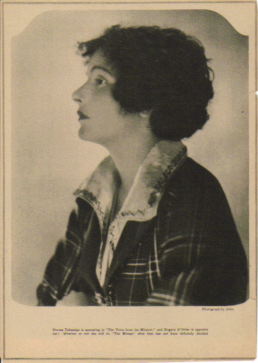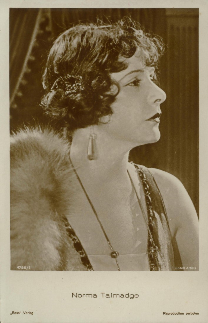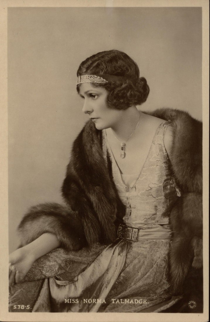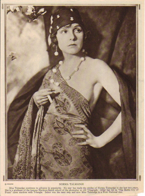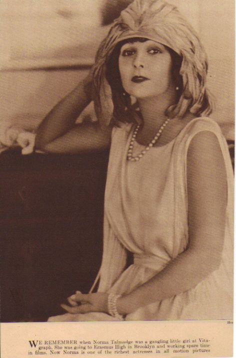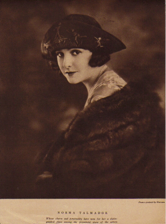 Here are assorted pictures of Norma Talmadge that don't fit neatly on any of the other pages in this website. Be sure to also see the biographical article, individual vintage articles and filmography links to individual films for additional pictures. And definitely don't forget The Silent Ladies photo gallery. As well as a fun picture of Norma with Theda Bara from the Chicago Tribune (you may have to scroll down to see it).