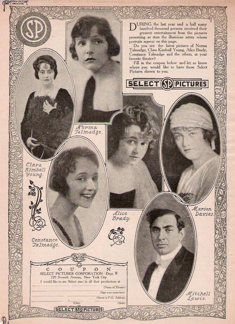 | An ad for Louis Selznick's Select Pictures showing the stars whose films he was releasing. | |