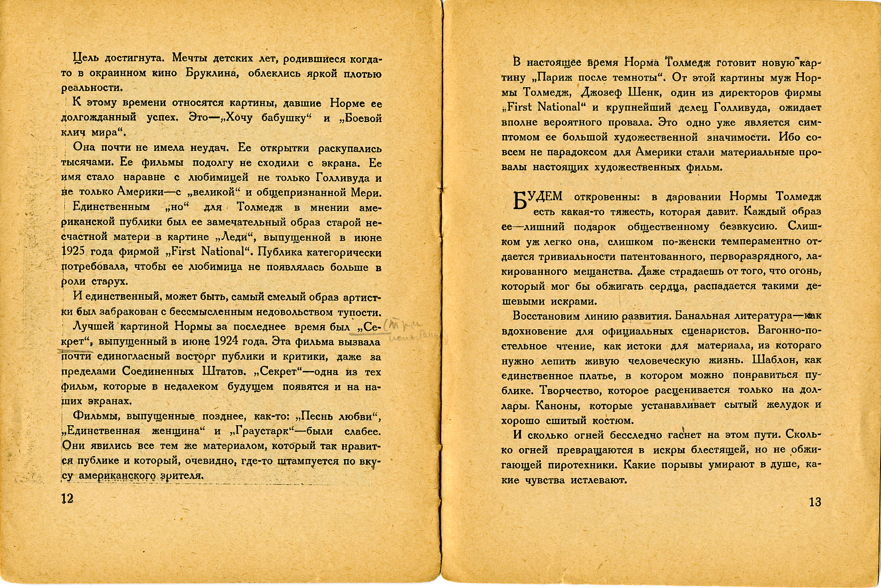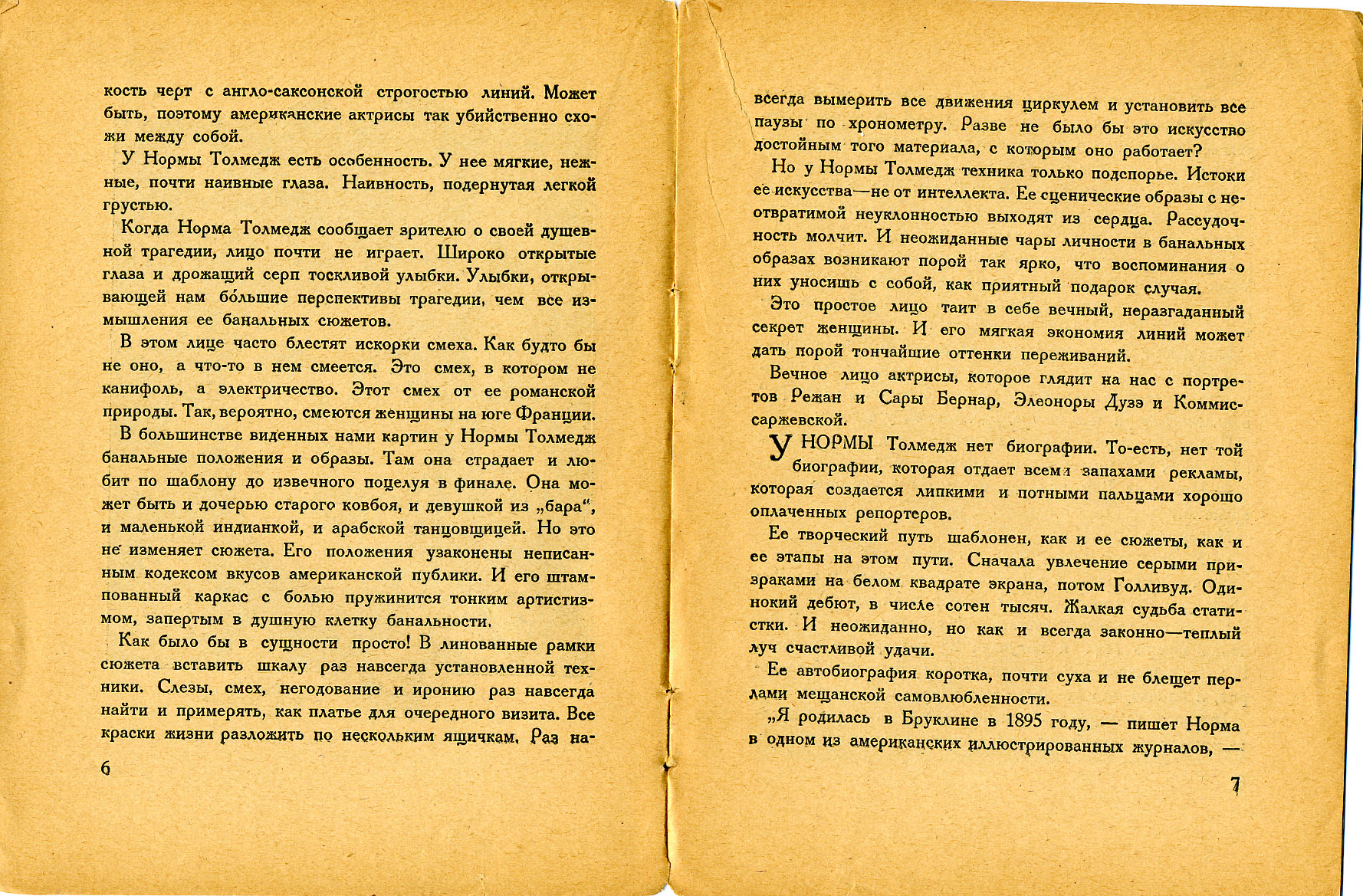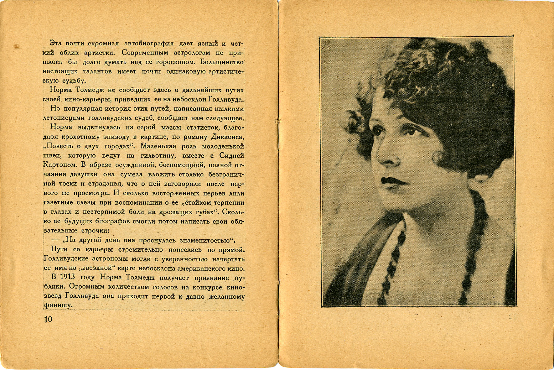 This little booklet is one of a series put out in Moscow in the late 1920s on international film stars. The only other ones i've encountered are German stars Ossi Oswalda, Harry Liedtke, and various libraries hold volumes on Conrad Veidt, Leatrice Joy, Barbara LaMarr, D.W. Griffith, Ramon Novarro, Pearl White, Wallace Beery, Asta Nielsen, Sessue Hayakawa, Greta Garbo, Gloria Swanson, Ernest Torrence, Bernard Goetzke, as well as some Russian stars like Ivan Mozzhukhin (Mosjoukine). I'm sorry i can't translate the text, but i did reproduce each page so that if you can read Russian, you can enjoy the text. The rest of us will just enjoy the pictures