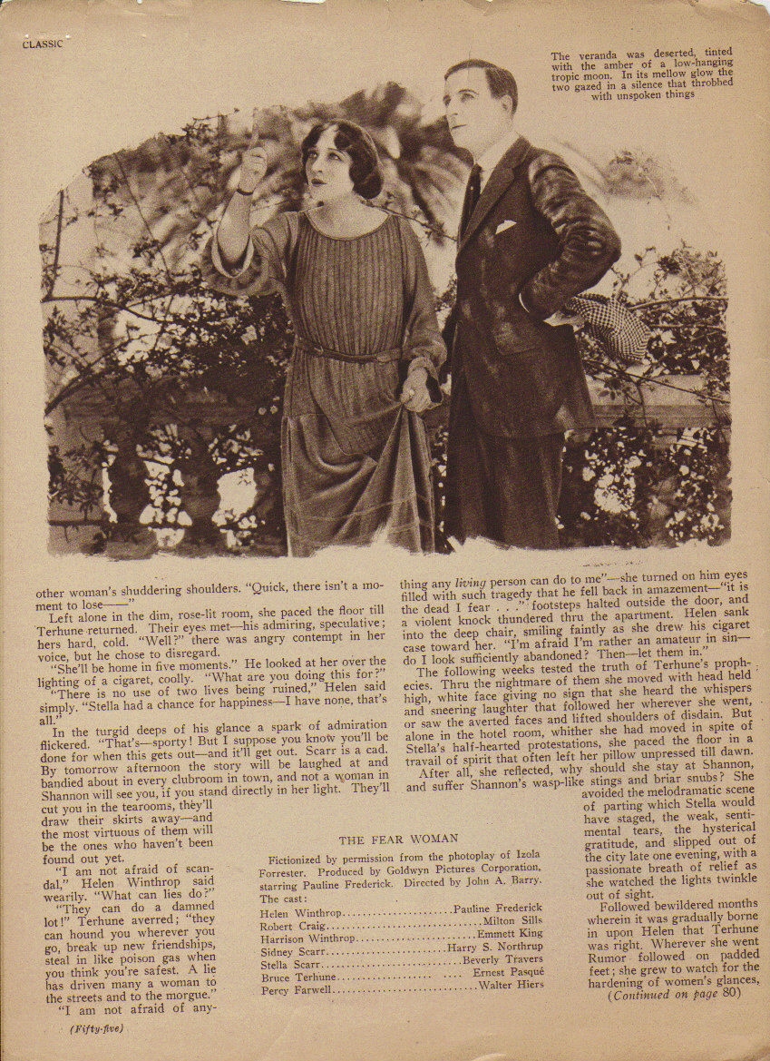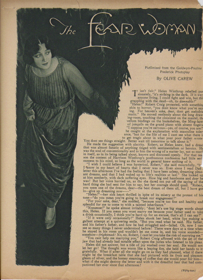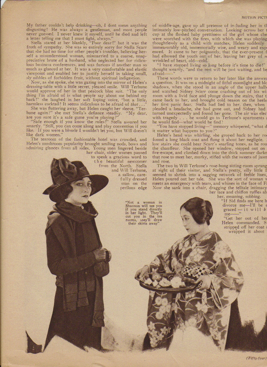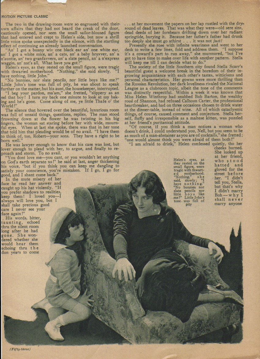 Fictionalization which appeared in Motion Picture Classic (issue unknown, lacks the end)