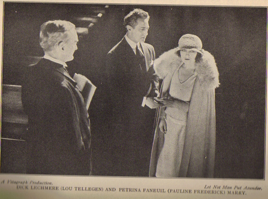 Let Not Man Put Asunder (1924) Vitagraph Co. of America. Director: J. Stuart Blackton. Scenario: Charles Gaskill. Cast: Pauline Frederick, Lou Tellegen, Leslie Austen, Helena D'Algy, Pauline Neff, Violet De Barros, Maurice Costello, Martha Petelle, Gladys Frazin, Homer Lynn. 5-6 reels. This film appears to be LOST