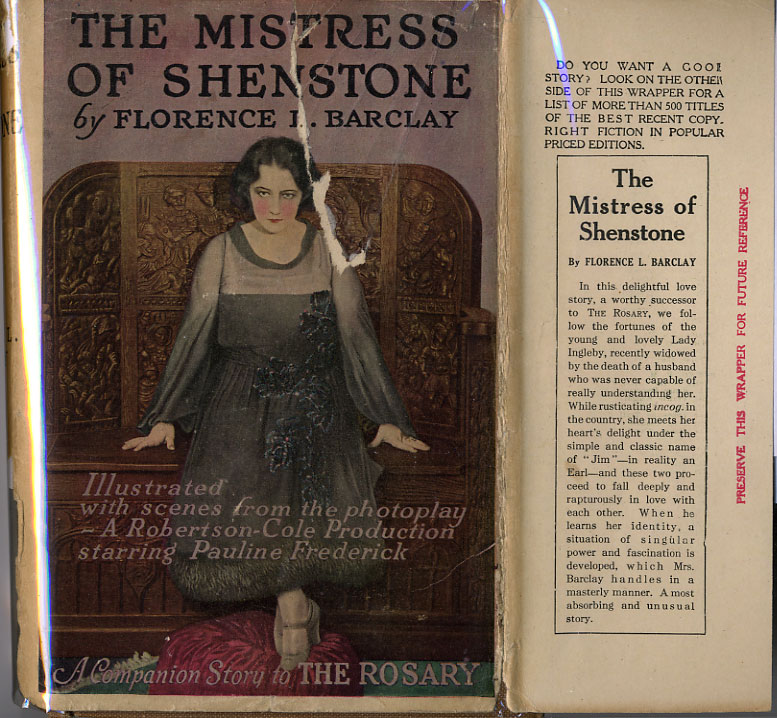 A quarter of a century or so ago the Laura Jean Libbey of England was Florence Barclay, who turned out romance after romance of the calibre known colloquially as "housemaid's delight" tales. They were mostly about lords and ladies, dooks and dookesses, etc. "The Mistress of Shenstone" was one of them and has now been selected as a photoplay vehicle for Pauline Fredericks, who is starring under the Robertson-Cole trade-mark.