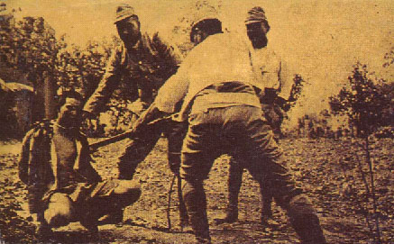 Bayonetting was a common means of killing Chinese prisoners- soldiers helped each other in the practice