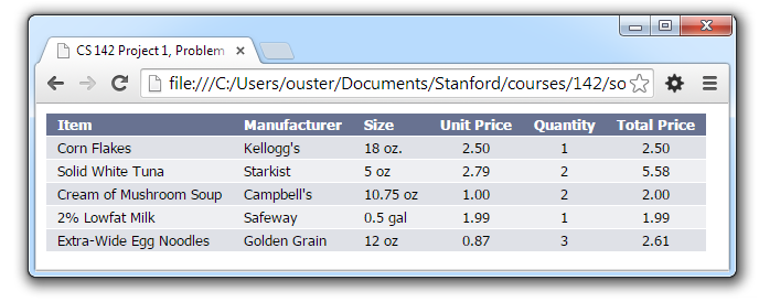 be in a file p3.html. Note: your solution for this problem