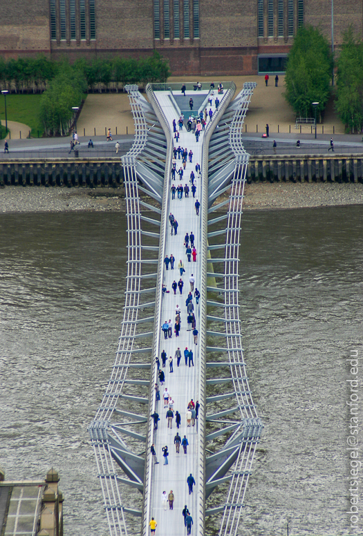 Taken at the harp-shaped bridge in Puerto Madero - the weight is all suspended from one bank!