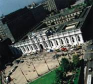 El Palacio de la Moneda is located between Plaza de la Constitución and Plaza de la Libertad in the center of Santiago. The building was designed by the Italian architect Joaquin Toesca and inaugurated in 1805. La Moneda was originally used as a mint, but it has housed the president’s offices and residence since the middle of the 19th century. In 1973, the building was bombed in a military coup that killed Salvador Allende and brought Augusto Pinochet to power. The building was restored according Toesca’s original plans after the attack.