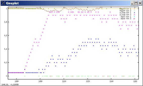 Zoomed in on the outbreak of cooperation at t=1000. Remember: payoffs are 3,2,1,0.