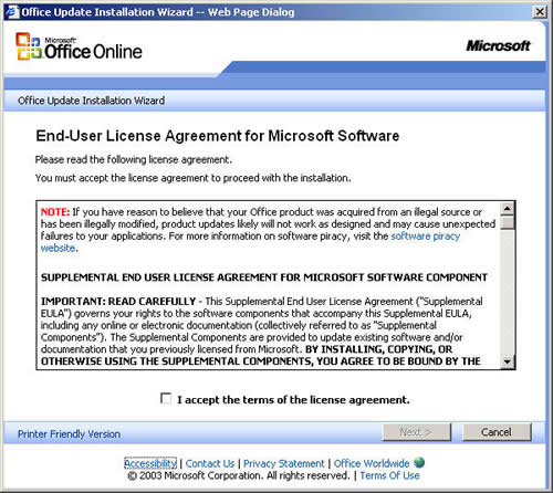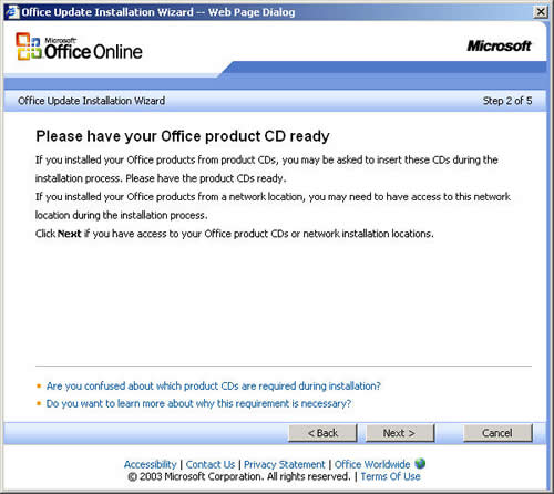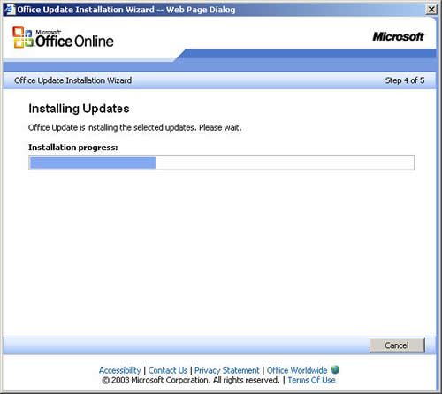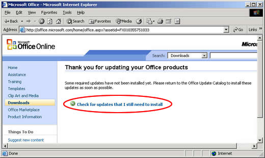 When you are taken to the Office Update web page, click the Check for Updates link and apply all available updates.